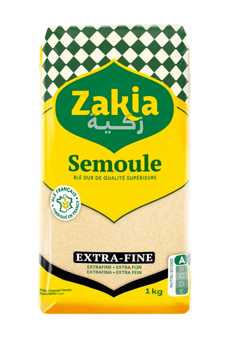 Elaborée avec du blé dur de qualité supérieure, la semoule fine Zakia est l’ingrédient indispensable pour la réussite de vos Harcha, Cherchoukha et Kesra.